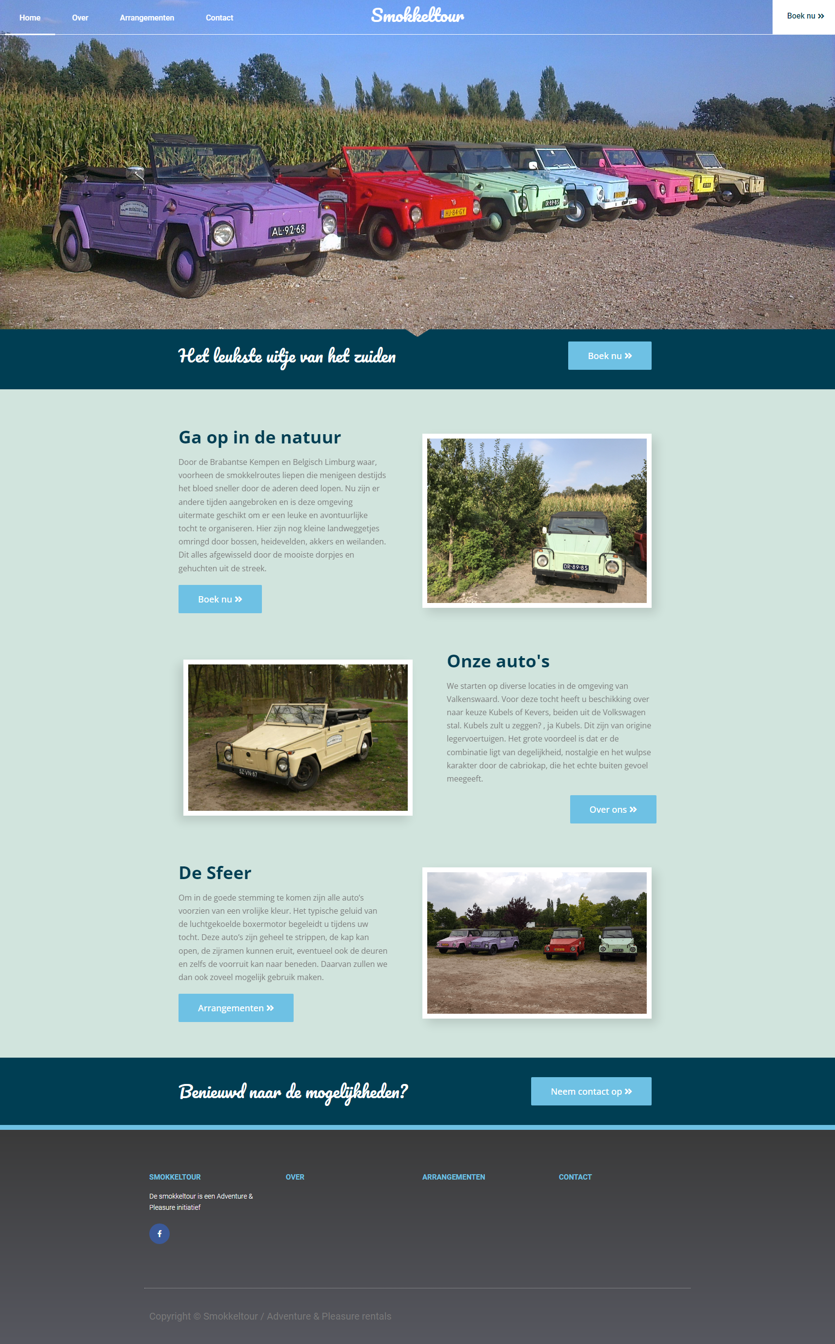 Minimalistische website waar Smokkeltour een kleine impressie geeft van de autos en de arrangementen.